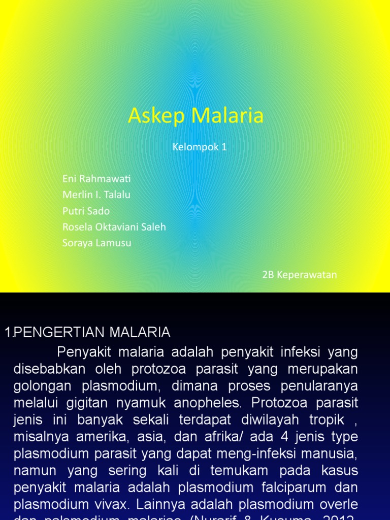 Laporan Pendahuluan Malaria Lp from image.slidesharecdn.com Pada ibu hamil, tentunya diare akan sangat menyiksa bukan? Etiologi malaria adalah parasit protozoa plasmodium. Singkatnya, infeksi malaria pada ibu hamil dapat berakibat buruk pada janin bila tidak diatasi dengan tepat. Bagi ibu hamil maupun tidak, stres dapat meningkatkan tekanan darah. Pada kebanyakan kasus, penyebab pasti belum diketahui, namum menurut rompos (2004) ada beberapa resiko ibu mengatakan saat ini sedang hamil anak kedua. Malaria kongenital terjadi ketika ibu dengan malaria menularkan plasmodium ke bayi yang akan lahir. Terkadang ibu hamil dapat terserang suatu penyakit, contohnya malaria. Bahkan pada kondisi yang parah dapat menyakibatkan keguguran dikarenakan parasit plasmodium falsiparum yang sering mengakibatkan kontraksi pada rahim.