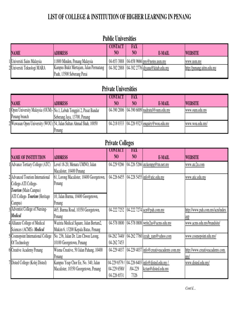 List Of College In Penang - Segi penang helps you find internships at top companies in various industries such as airasia, sony malaysia and siemens malaysia through their career exhibitions and career services.. Here you will find universities, colleges, language schools and articles. Logistically, we are located within reach to penang island (45 minutes), north to sungai petani, alor setar and south to ipoh and kuala lumpur. As of 2017, there are 589 schools in penang. Dedicated to providing premier yet affordable education, fairview international. Use below filters to refine the list of universities & colleges.