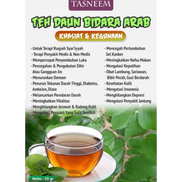 Teh Daun Bidara Arab Netto 50gr Tasneem Shopee Indonesia from cf.shopee.co.id Akar daun bidara misalnya, dapat menyembuhkan batuk, sakit empedu, dan sakit kepala. Bidara adalah penyebutan bagi tanaman ini dalam bahasa indonesia, sedangkan di beberapa daerah di indonesia, tanaman ini punya banyak nama. Daun bidara memiliki kandungan saponin, yang mana berkhasiat untuk memberikan efek yang menenangkan. Namun sayangnya, khasiat daun ini masih sering diabaikan. Teh daun bidara adalah teh kesehatan untuk membantu terapi penyembuhan gangguan medis maupun non medis (gangguan jin, sihir). Manfaat teh daun bidara tersebut tidak lepas dari kandungan antioksidan yang ada di dalamnya. Kandungan saponin pada daun bidara berkhasiat memberikan efek menenangkan. Manfaat teh daun bidara untuk kesehatan memang sudah tidak diragukan lagi.memiliki manfaat untuk kesehatan, terutama mengatasi masalah pencernaan.